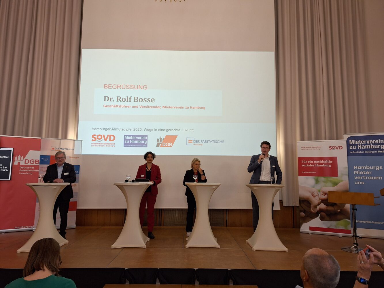Mehr als 180 Interessierte diskutierten im Oktober auf dem ersten Hamburger Armutsgipfel im Haus der Patriotischen Gesellschaft, wie gesellschaftliche Teilhabe für armutsbetroffene Menschen verbessert werden kann. Eingeladen hatten der Sozialverband Deutschland (SoVD), der Mieterverein zu Hamburg, der DGB und Der Paritätische.